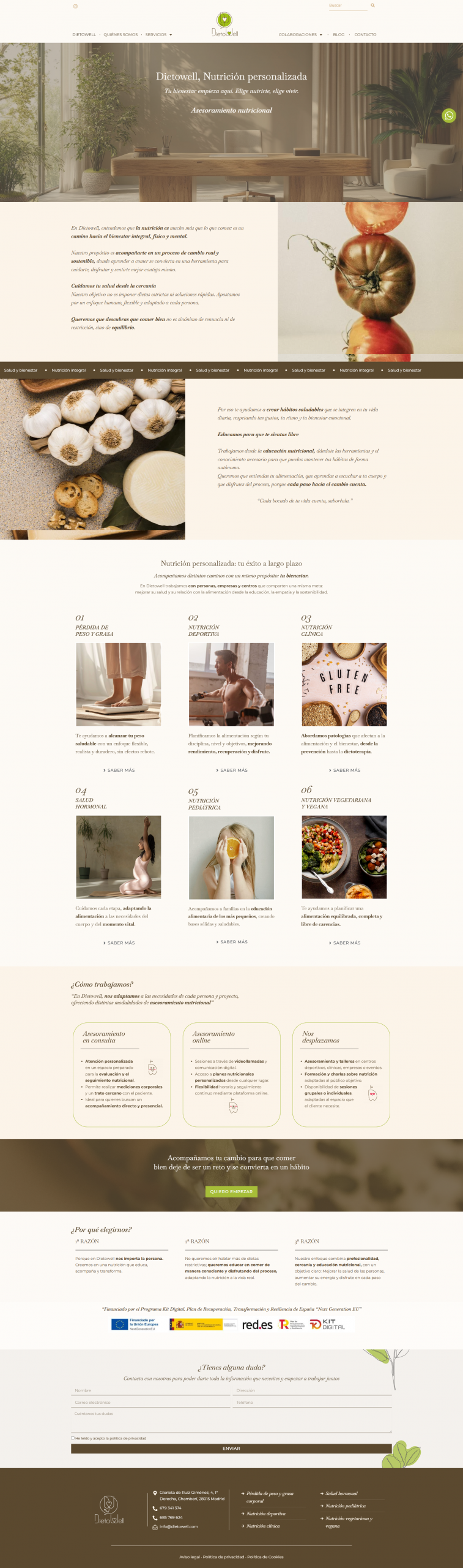 Diseño de la página web de Dietowell, empresa de nutrición personalizada.
